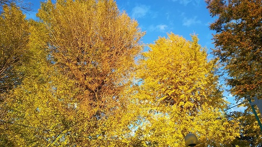 買い物に行ったら、近所の神社のイチョウが見事でした